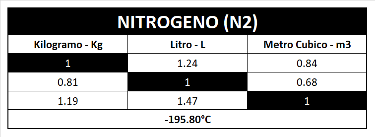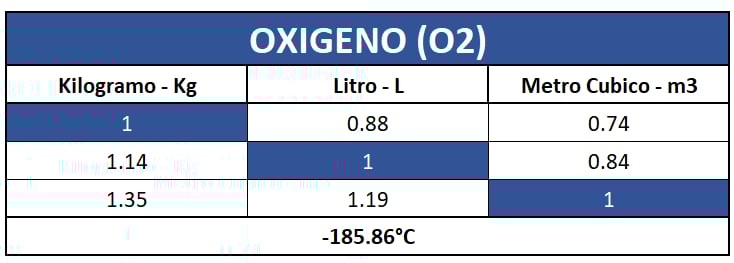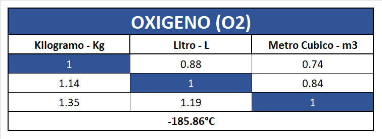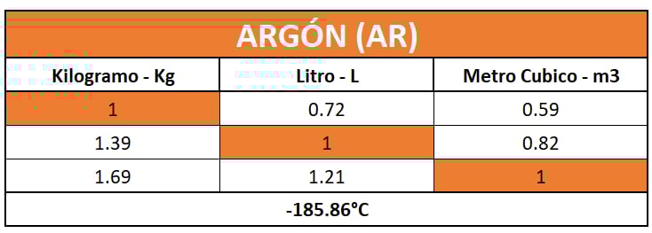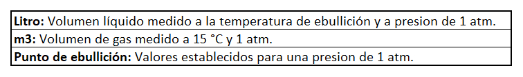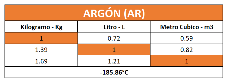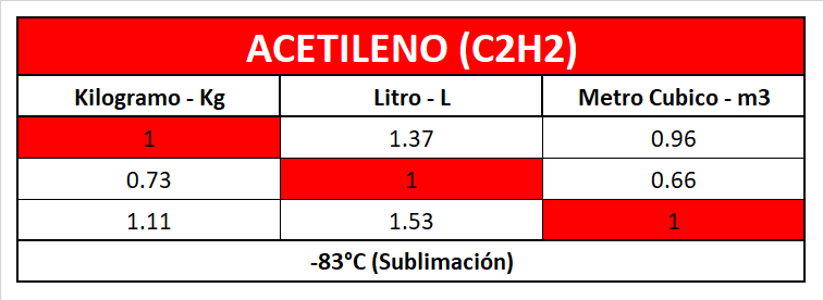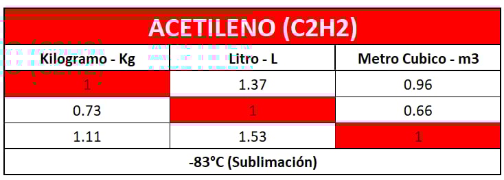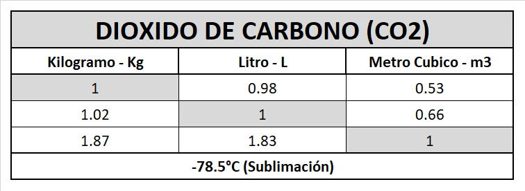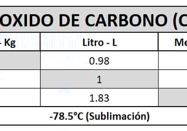 Tabla de Conversión de Gases